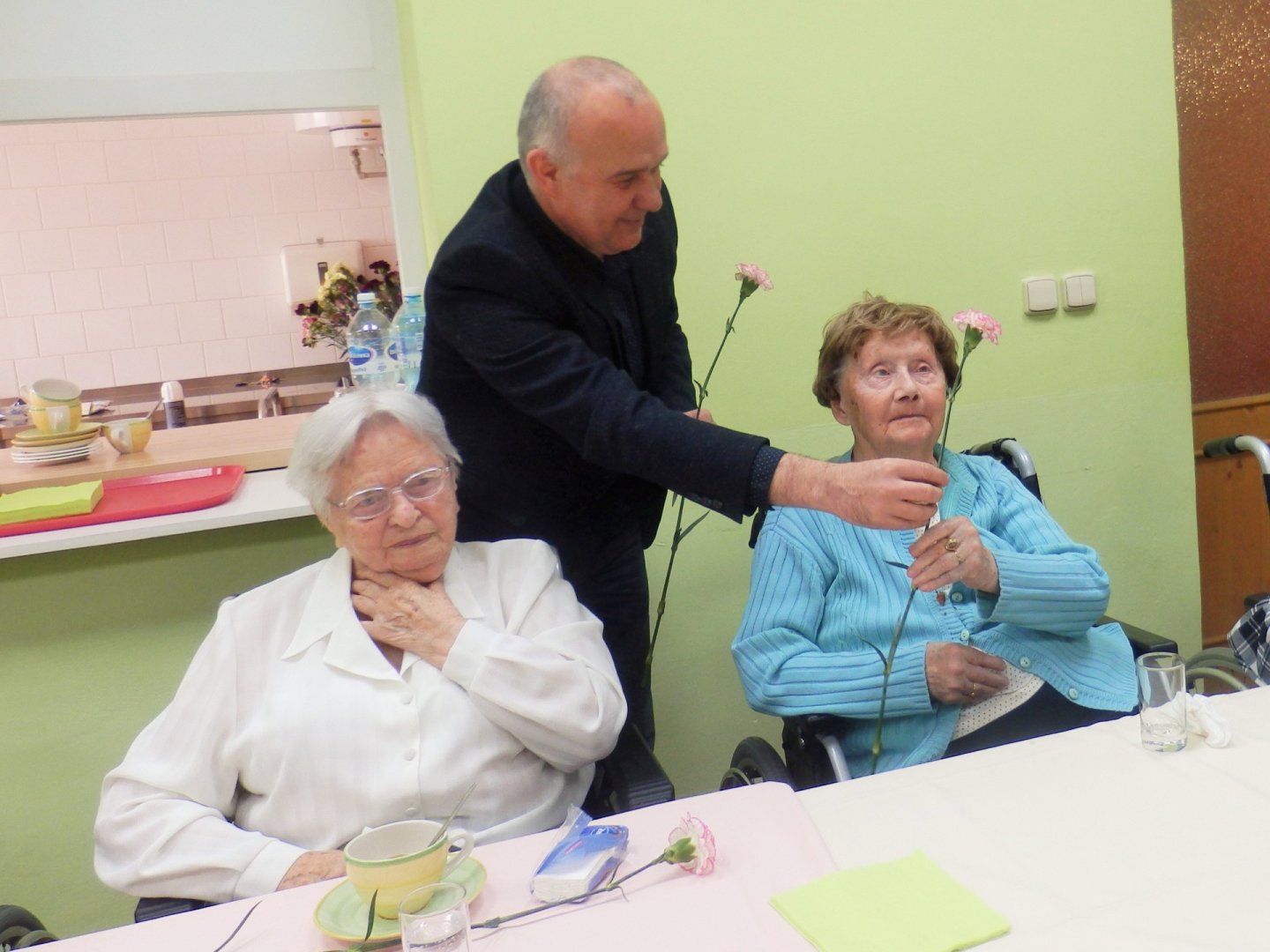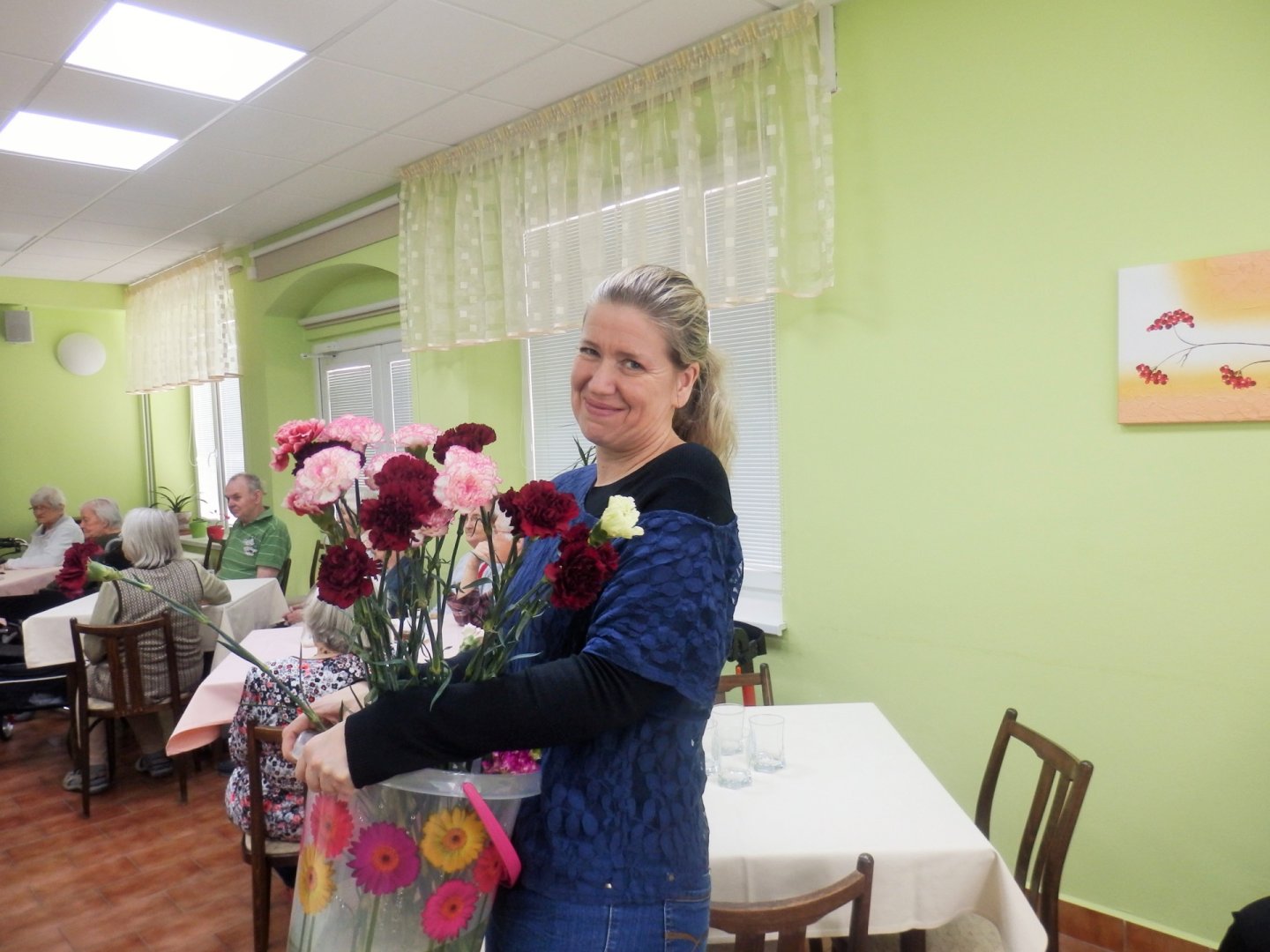 Na žádném nechyběla káva a moučník, v denním stacionáři to byly seniorkami vlastnoručně upečené Míša-řezy. S úsměvem se vzpomínalo na dřívější oficiální oslavy, zazněly citáty o ženách i písničky oblíbených zpěváků. Každá žena byla obdarována kytičkou z rukou povolaných, od pana ředitele Rottera. Nezapomněli jsme ani na přítomné muže, oslavili svátek s námi, v domově pro seniory měli možnost prověřit své znalosti o ženách i galantnost v zábavném kvízu. Rovněž terénní pečovatelky z pečovatelské služby vyjely 8. března za svými klientkami s kytičkou.