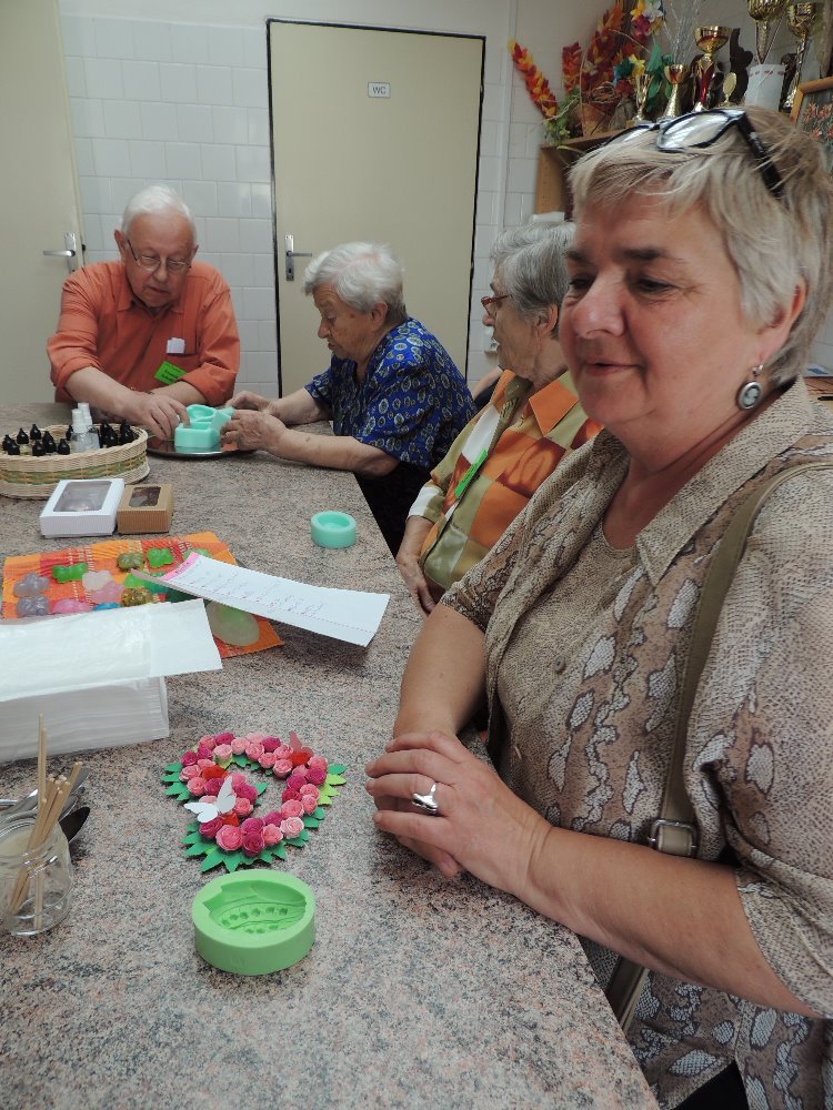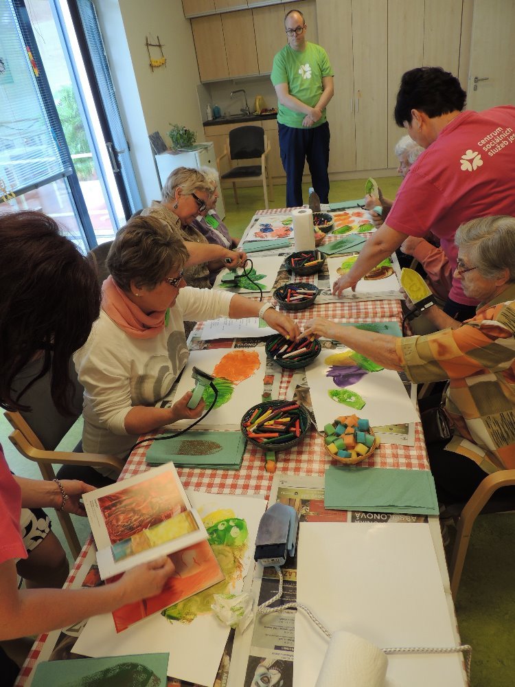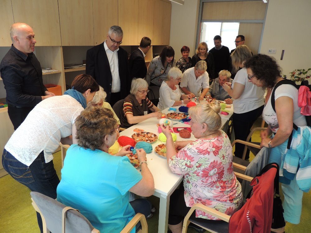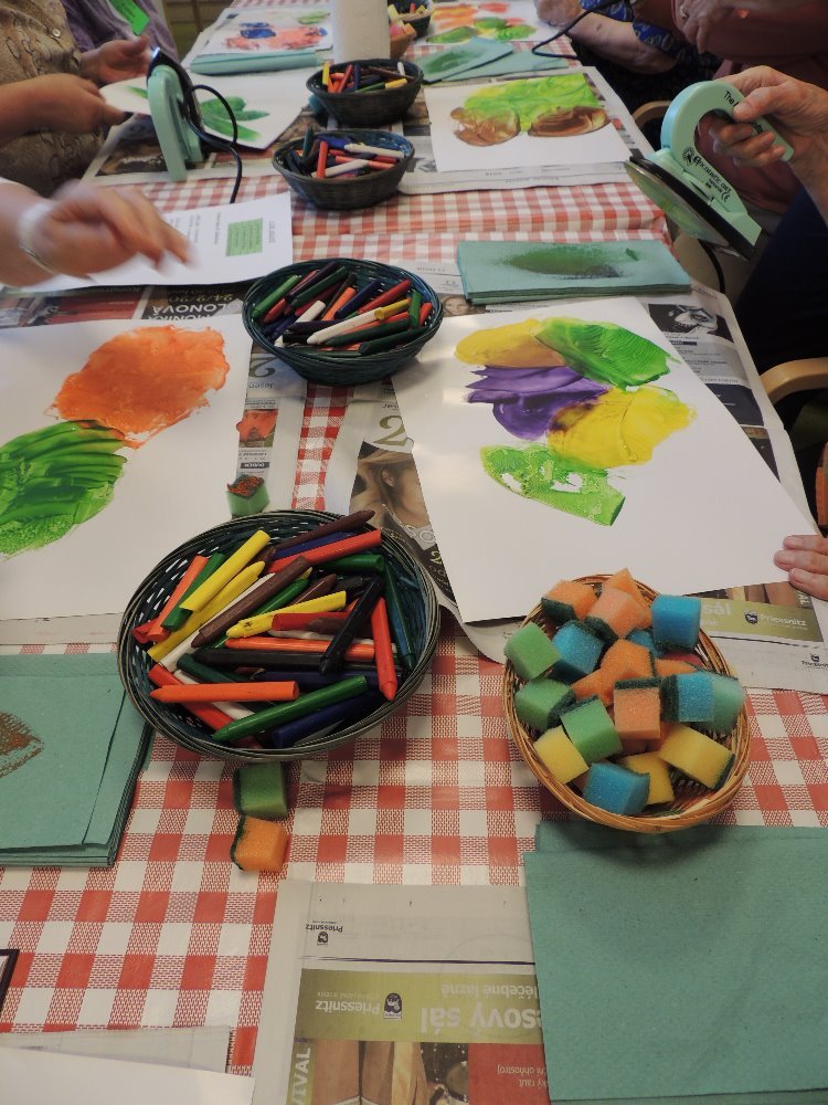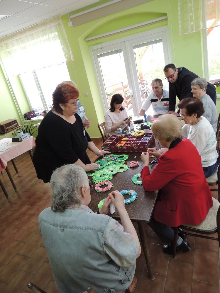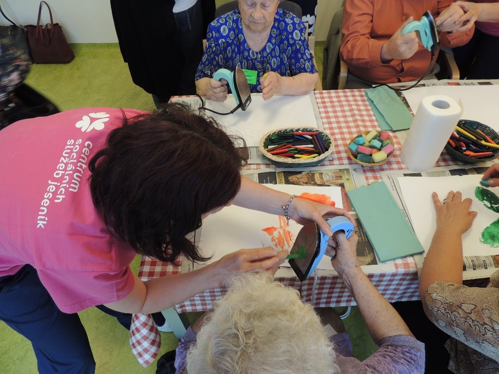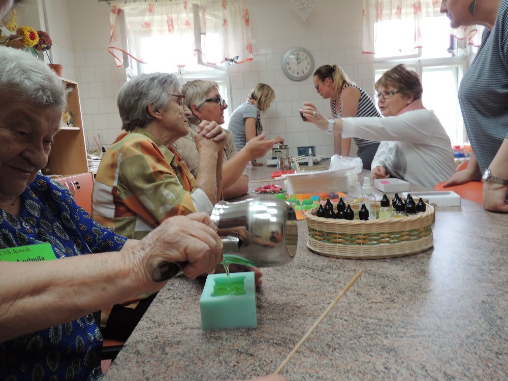 Cílem tohoto česko-polského setkání bylo kromě vzájemné interakce také rozvíjení kreativních schopností za pomoci jemné motoriky. Aktivity byly vybrány tak, aby přinesly radost, zábavu a potěšení, ale také abychom se něco nového naučili. Celkem 20 seniorů (z DPS Prudnik, CSS Jeseník a Klubu seniorů Jeseník) se během dne vystřídalo na 4 stanovištích. Mohli si vyzkoušet Enkaustickou malbu (známá také jako malování horkým voskem za pomoci enkaustické žehličky), Textilní výrobu - ptáčci ze zbytků vlněných přízí, Ruční výrobu mýdla a Dekorace z papíru - květinové srdce či věnec. Všichni pracovali s obrovským nadšením, což mohli ostatní posoudit a ohodnotit na výstavce, která postupně vznikala a byla doplňována až do odpoledních hodin. Pomáhali všichni (lektoři i pracovníci přímé obslužné péče), někteří se zapojovali i opakovaně a práce se dařila. Nemohu opomenout také podporu stravovacího úseku, který zajistil jak celodenní pitný režim, tak také něco dobrého na zub. Na závěr jsme se sešli opět v jídelně, při odpolední kávě zhodnotili celodenní činnosti, účastníkům rozdali jejich překrásné výrobky a rozloučili se s přáním podobnou akci co nejdříve opakovat.