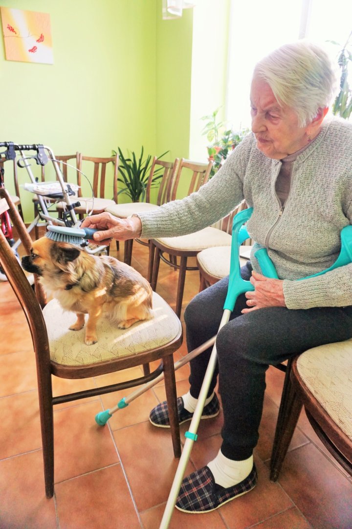 Canisterapií se rozumí léčebný kontakt psa a člověka. Pes už svou přítomností dokáže vyvolat dobrou náladu všude tam, kde je jí nedostatek. A o tom, že úsměv léčí není pochyb, proto pro aktivizaci klientů Domova pro seniory rádi canisterapii využíváme.
