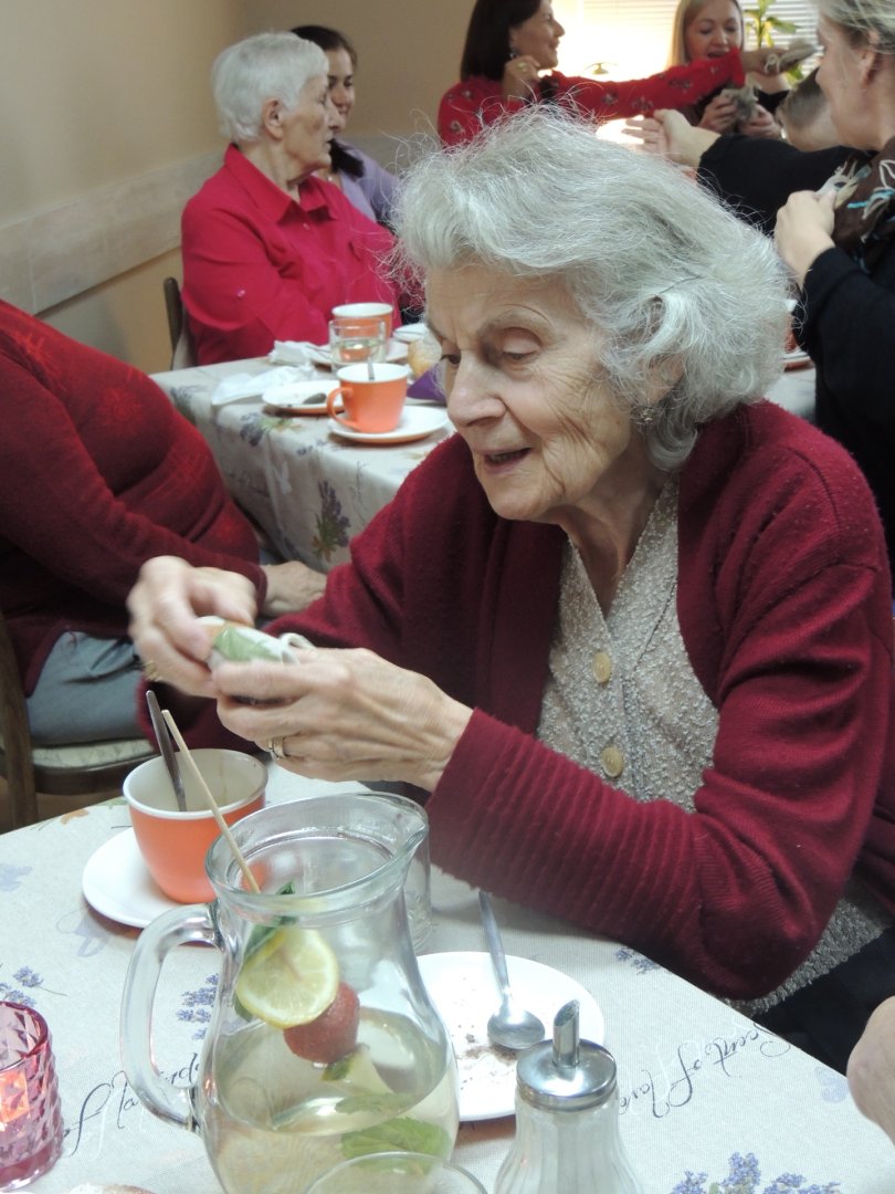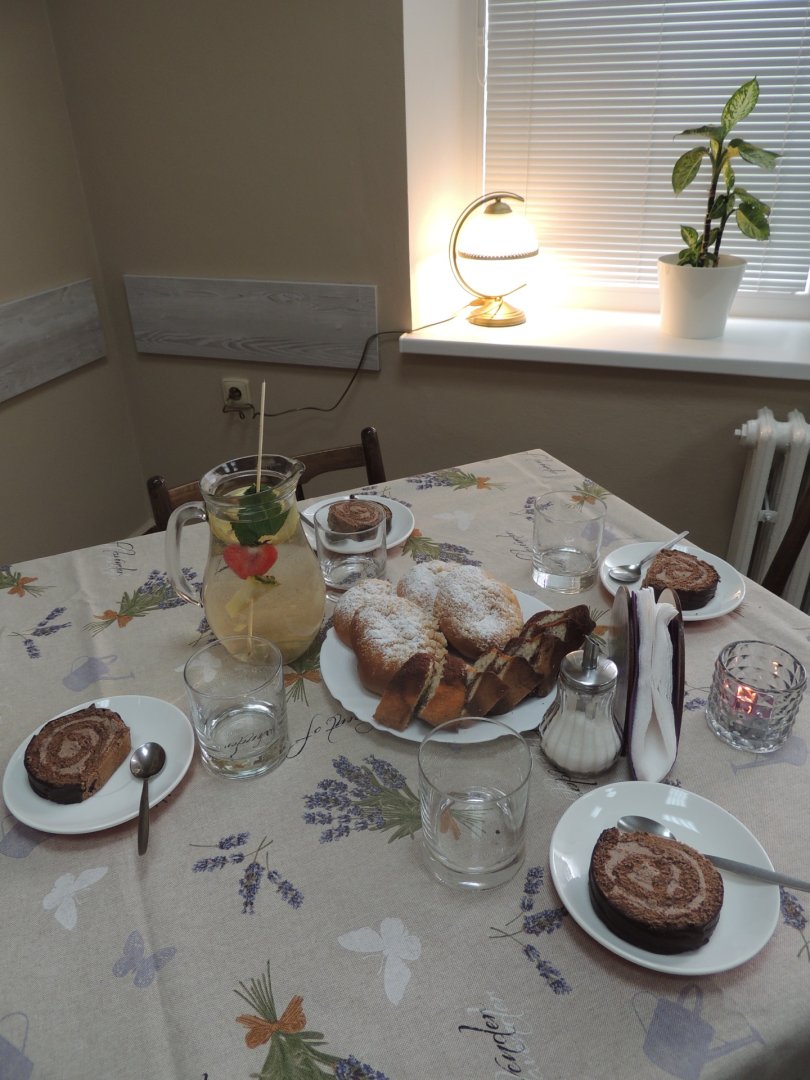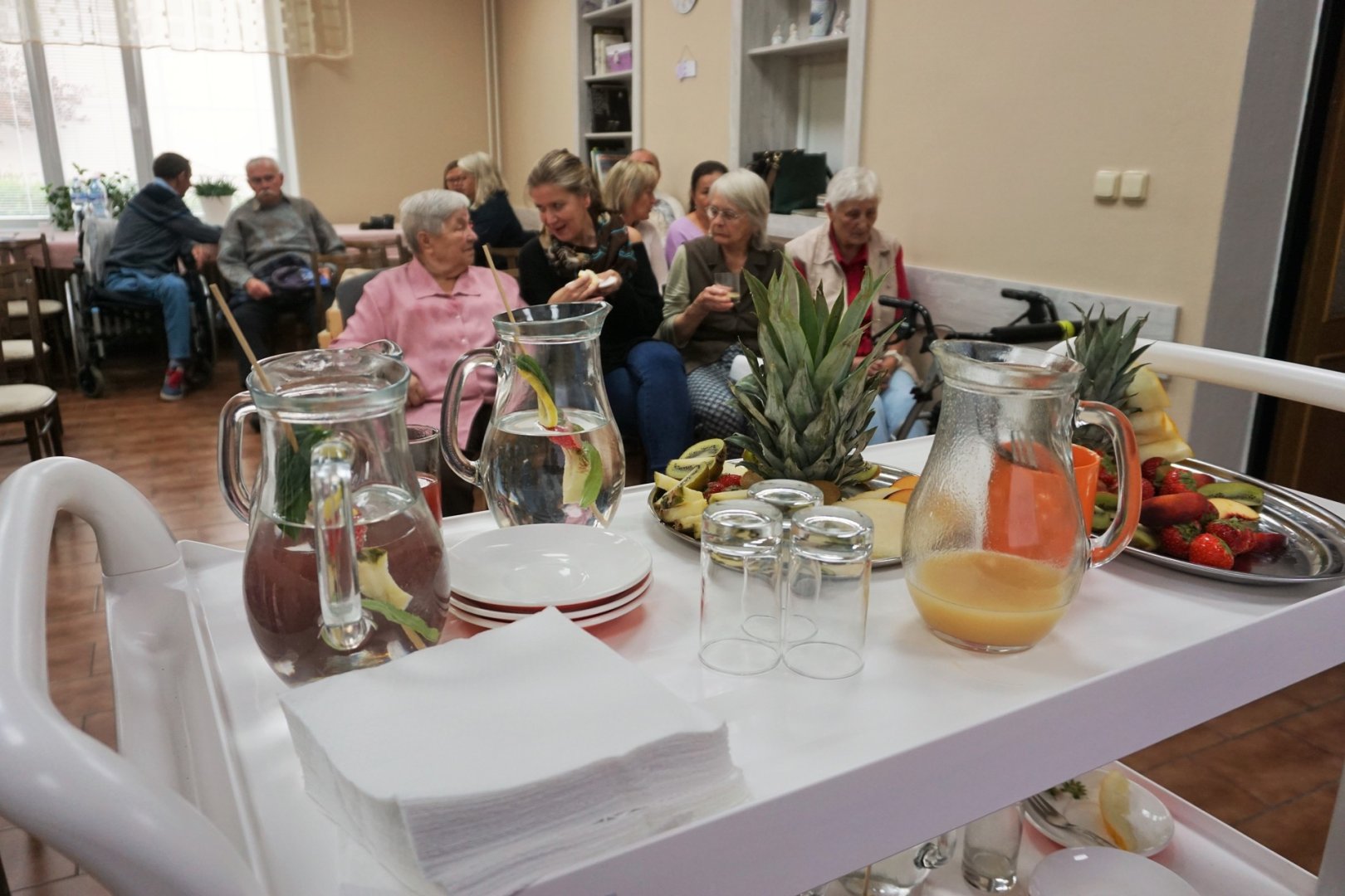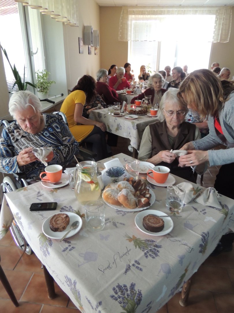 Po obědě (oblíbená a chutná svíčková) a krátkém odpočinku ve společenské místnosti pokračoval odpolední program. Odpoledne proběhlo v „Levandulové kavárně“, kterou se nám podařilo za pomoci tohoto projektu zrealizovat. Nejen nová malba, ale i bytový textil a dekorační předměty v duchu „Lavender“ daly vyniknout rekonstruovanému prostoru. Čekalo nás společenské posezení jako v kavárně - u šálku dobré kávy přímo z kávovaru, nechyběl ani kulturní program. Krátkou prezentací o tom, jak a k čemu by měla sloužit „Reminiscence“ nás provedla Alice Macečková, sociální pracovnice Chráněného bydlení a Denního stacionáře. Shlédli jsme biografický příběh profesionálně zpracovaný v programu PowerPoint k 80. výročí narození Karla Gotta, včetně zvukových ukázek. Vzpomínky prostřednictvím prezentovaných fotografií z minulého, již ukončeného projektu, nám pomohla utříbit Petra Závěšická. Chutnaly nám koláče, bábovka, roláda, levandulová limonáda i celý program zakončený videoprojekcí písně „Levandulová……“ v podání Hany Hegerové a Petra Hapky.