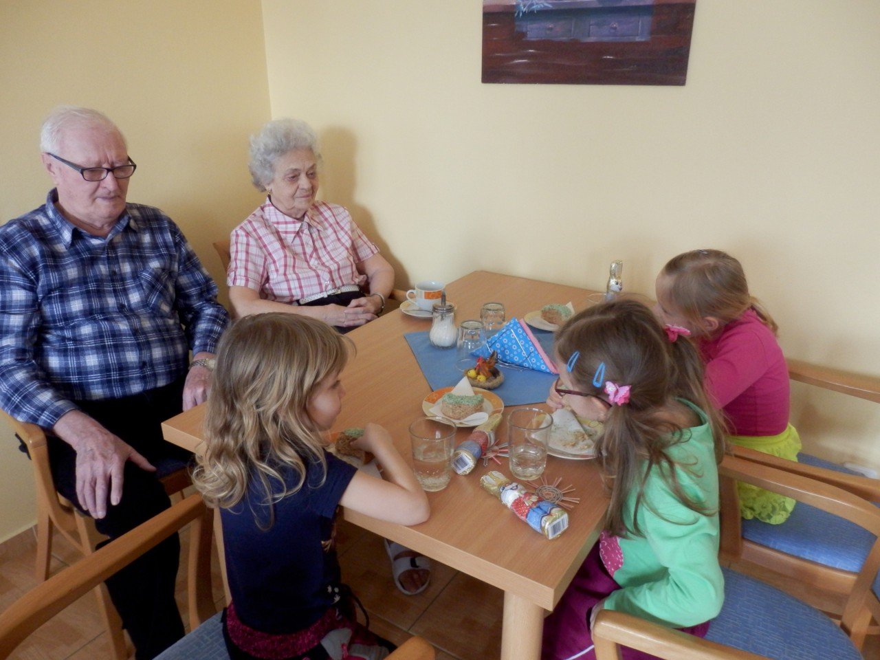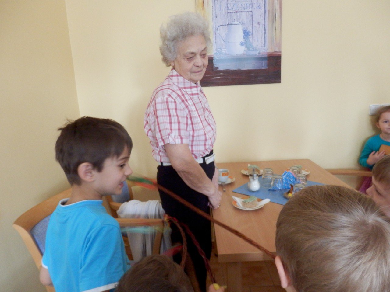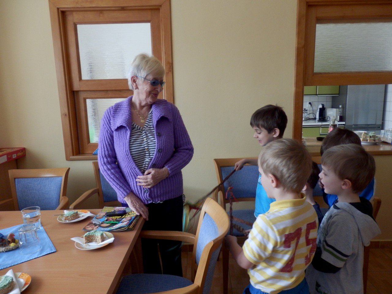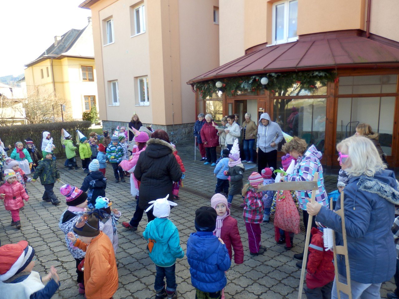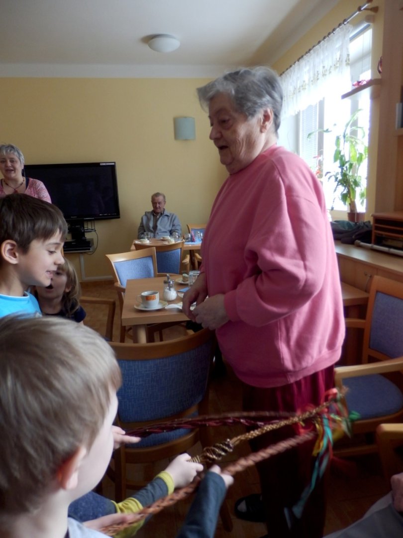 Letos už máme za sebou dvě takováto setkání, jedno v období masopustu, kdy se nám děti z MŠ i přes nepřízeň počasí přišly 9.2.2016 v rámci masopustního průvodu pochlubit se svými maskami, a druhé v období Velikonoc, kdy k nám děti zavítaly 23.3.2016 na pomlázku. Velmi si vážíme ochoty a trpělivosti paní učitelek, které s dětmi nacvičí tematický program a přijdou nám ho předvést. Aktivity tohoto druhu vedou a učí děti pozitivně vnímat starší generaci a přispívají tak k sociálnímu začleňování seniorů do společnosti.